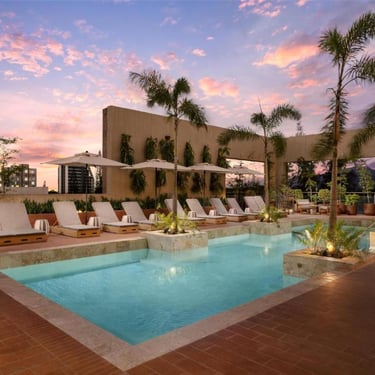 Find us in downtown Santiago, adjacent to Agora Mall. The Monument to the Heroes of the Restoration and the Santiago Apostol Cathedral are each within a 10-minute drive. We offer a 24-hour fitness center, event space, and an outdoor pool with hammocks. Enjoy our cigar lounge, pool bar, and restaurant.